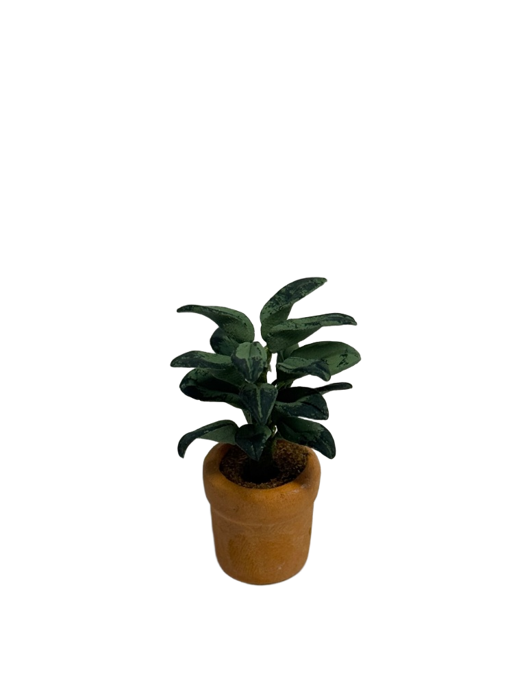 再看植株,更是把手工粘土的细腻工艺展现得淋漓尽致。叶片是舒展的长椭圆形,不是呆板的规整形状,而是带着自然生长的灵动 —— 主脉两侧铺着深绿色条纹,像是植物天生的脉络,而沿着叶脉和叶缘,又点缀着细细的黄色条纹,如同缠绕在叶片上的 “金链”,不抢眼却恰好提亮了整体色彩。有些叶片的背面还藏着淡淡的紫红色斑块,像是阳光照不到的地方悄悄晕开的温柔,不经意间发现时,总让人觉得多了份惊喜。