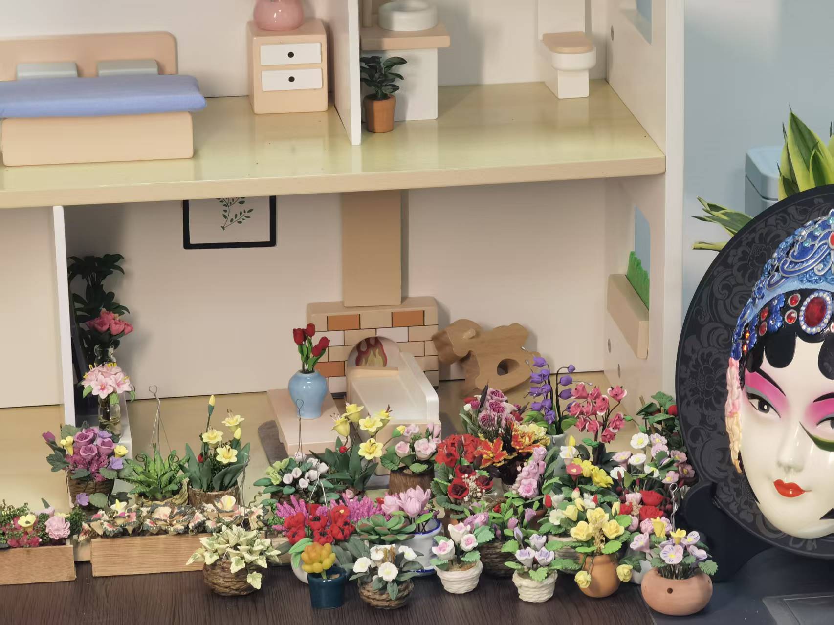 1:12的比例,让这小小的盆栽,成为了微观世界的缩影。它没有真实盆栽的高大挺拔,却有着不输前者的雅致与灵动,放在掌心,小巧玲珑,仿佛能握住一整个春天;置于案头,不占空间,却能为平淡的生活增添几分生机与诗意。粘土的温润质感,让每一盆迷你盆栽都有着独特的肌理与温度,没有两件完全相同的作品,每一处细微的差异,都是手工创作的印记,承载着创作者的心意与热爱。