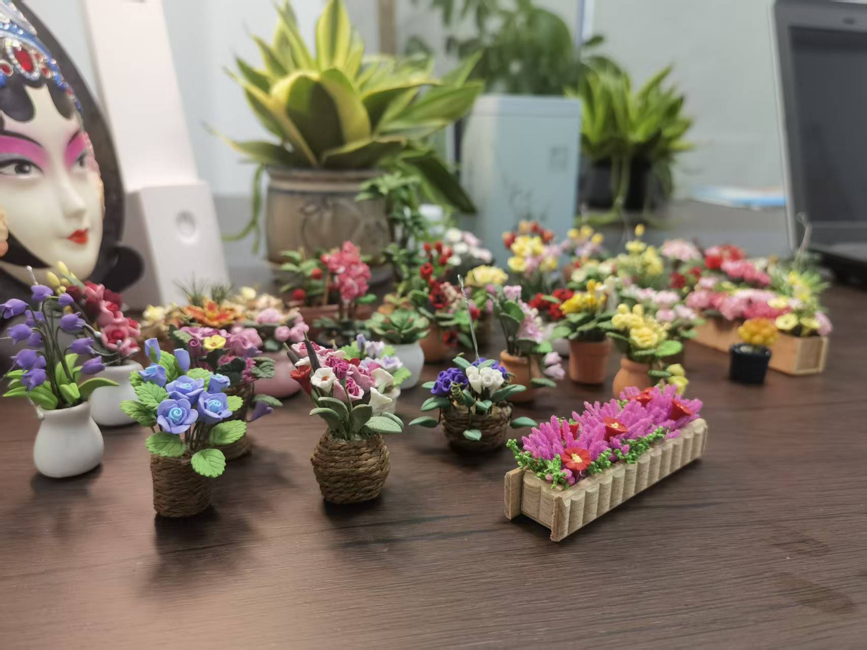 迷你盆栽以细腻粘土为原料,严格遵循1:12的尺寸比例打造,将自然中的绿植景观浓缩于方寸之间,既保留了传统盆栽的雅致韵味,又凭借小巧精致的形态、可塑多变的特质,成为兼具观赏性与实用性的桌面摆件,打破了传统盆栽对空间的要求,让自然之美融入日常每一处角落,承载着人们对精致生活的追求与对自然的热爱。